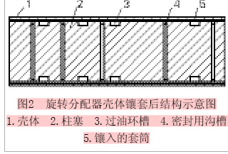 一臺(tái)加騰NK250E型的起重機(jī)旋轉(zhuǎn)分配器經(jīng)解體后,發(fā)現(xiàn)殼體內(nèi)5道環(huán)槽的臺(tái)階均有不同程度的磨損。為了節(jié)約資金,決定修復(fù)。
